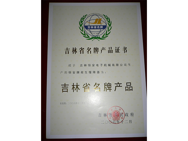 吉林省名牌產(chǎn)品證書(shū)
